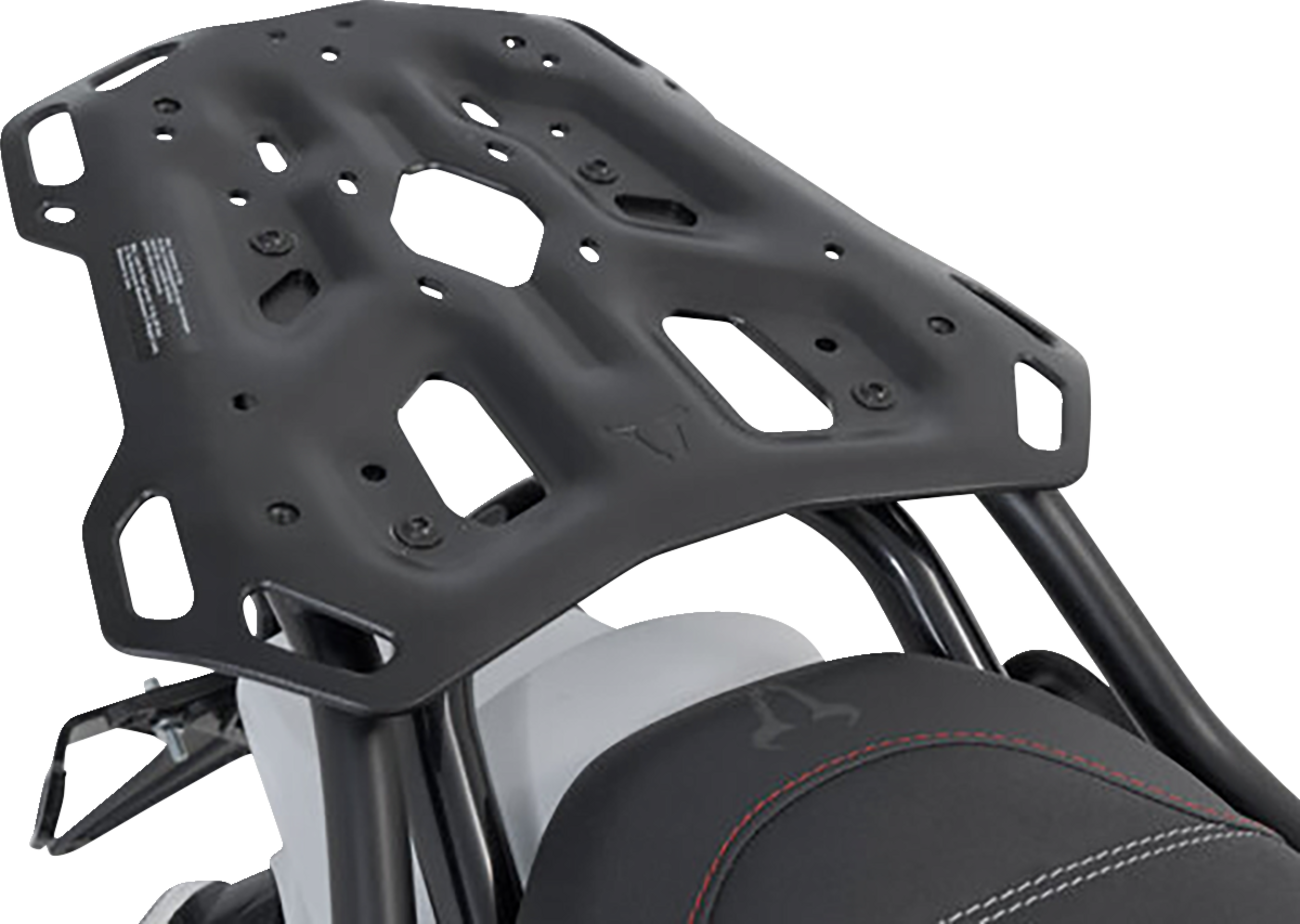 Robust rack for long tours and off-road rides featuring multiple functional bores for TRAX cases