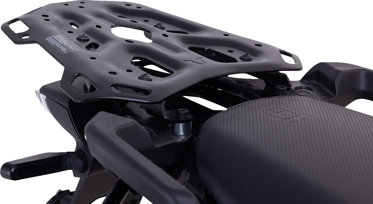 Robust rack for long tours and off-road rides featuring multiple functional bores for TRAX cases