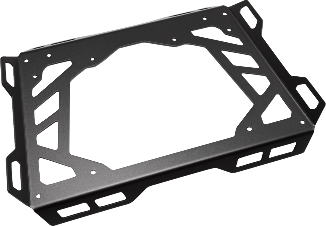 Robust rack for long tours and off-road rides featuring multiple functional bores for TRAX cases