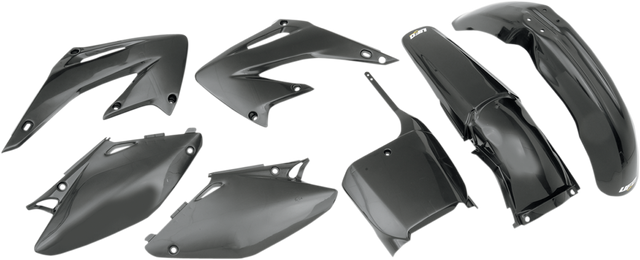 Body kit includes front and rear fender, radiator covers, side panels and front number plate; OEM matches stock bike color