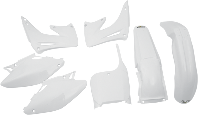 Body kit includes front and rear fender, radiator covers, side panels and front number plate; OEM matches stock bike color