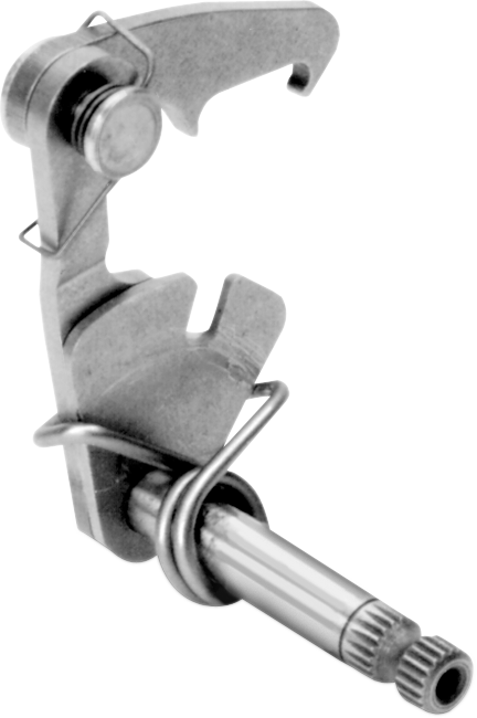 Assembly includes plate, spring, pawl plate, shifter shaft, spring, pin, washer and retaining ring