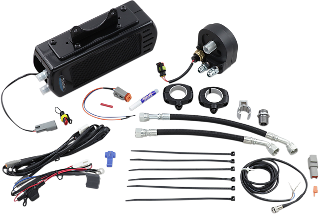 Oil adapter and thermal switch with waterproof connectors automatically turns on the powerful dual fans when oil reaches 210° F
