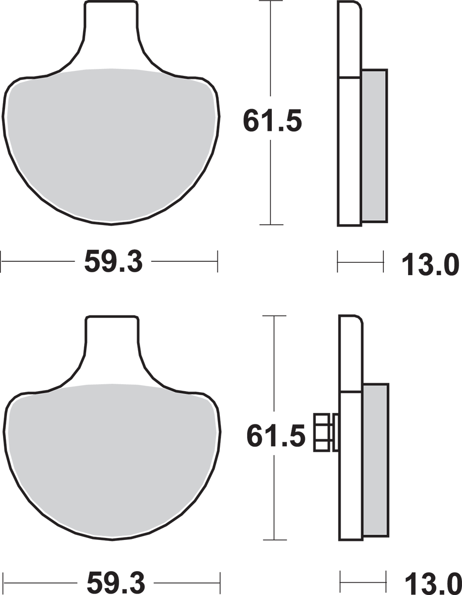 Front (HS) and rear (LS) compounds for ideal brake balance, to avoid rear wheel lock-up