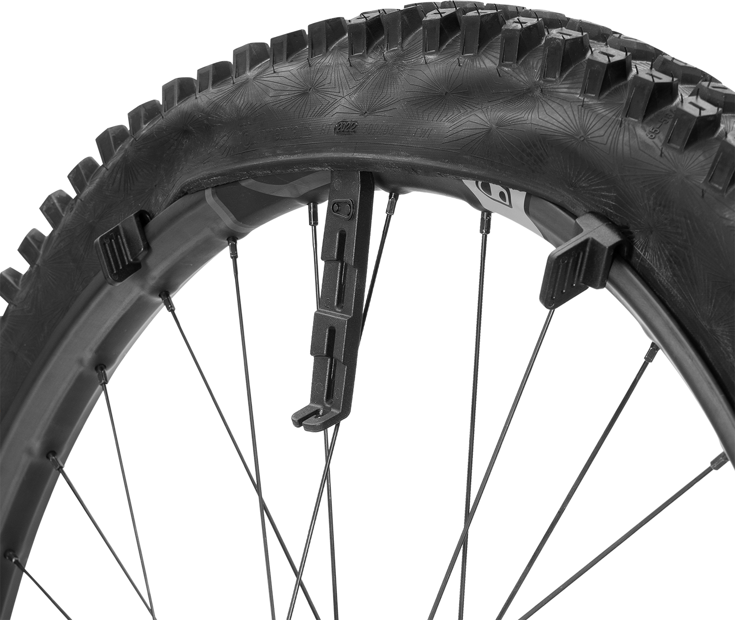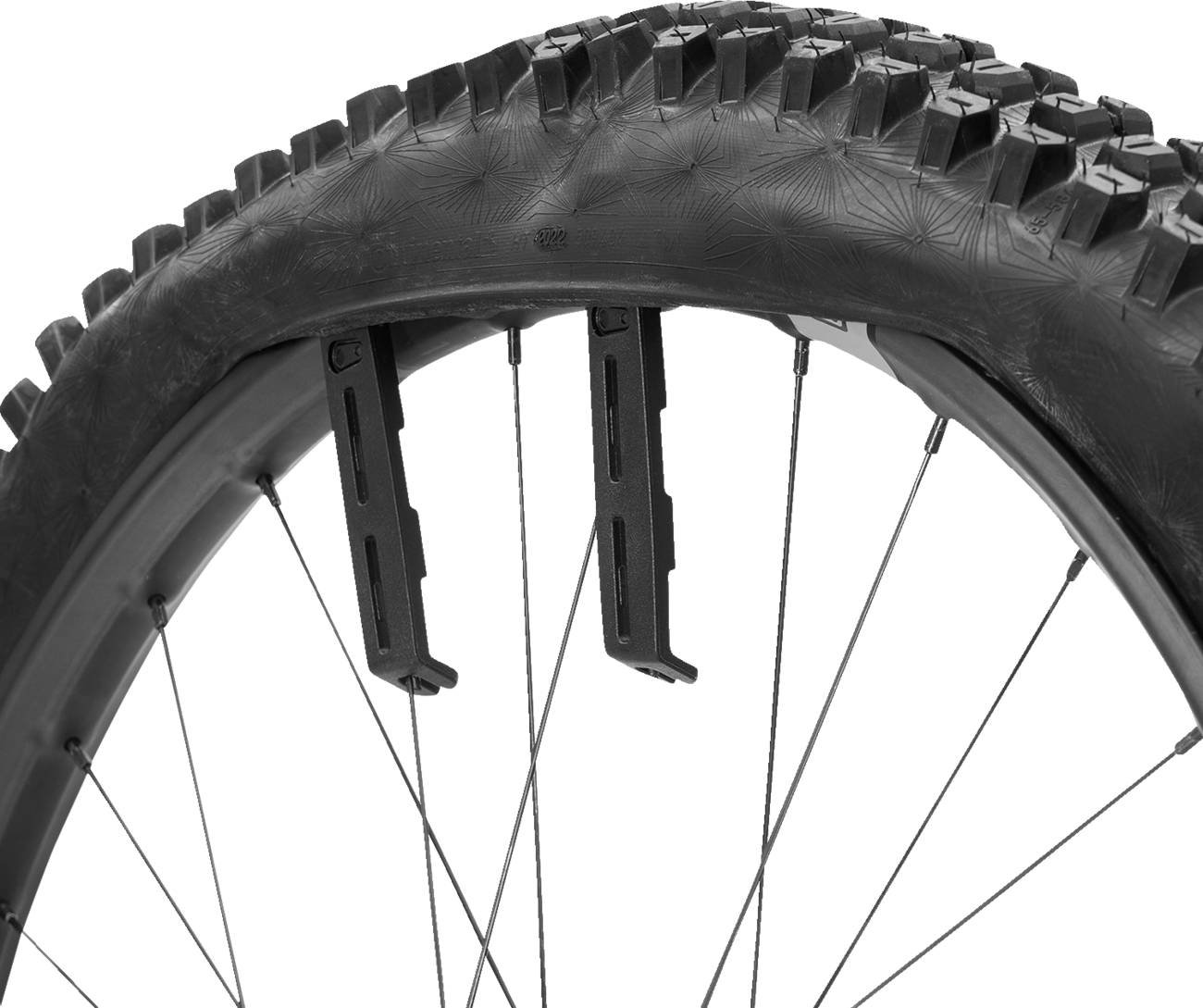 The included tire sliders secure the tire bead on the rim while you work, acting as a second set of hands to keep the tire in place— two gray sliders for thin rims and two black sliders for thick rims
