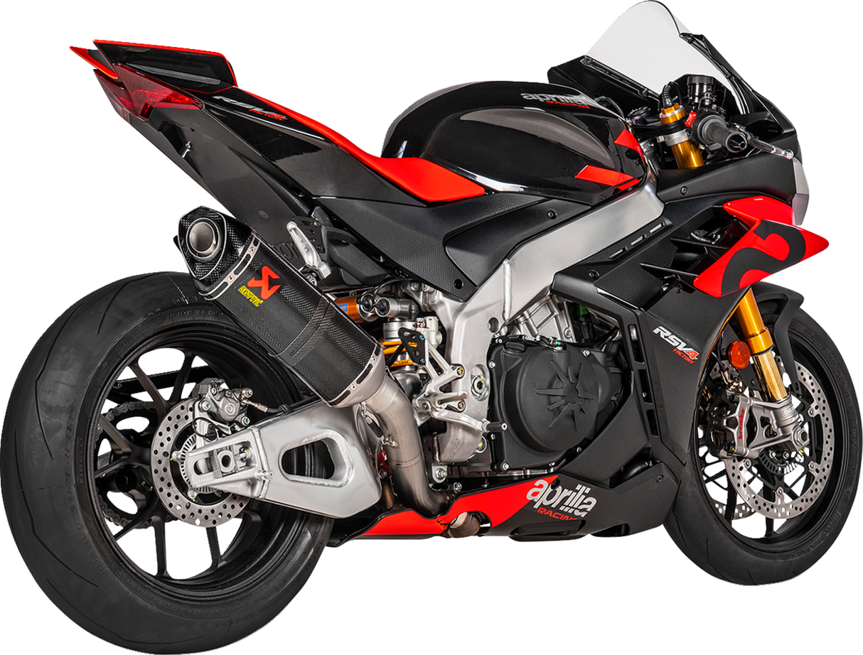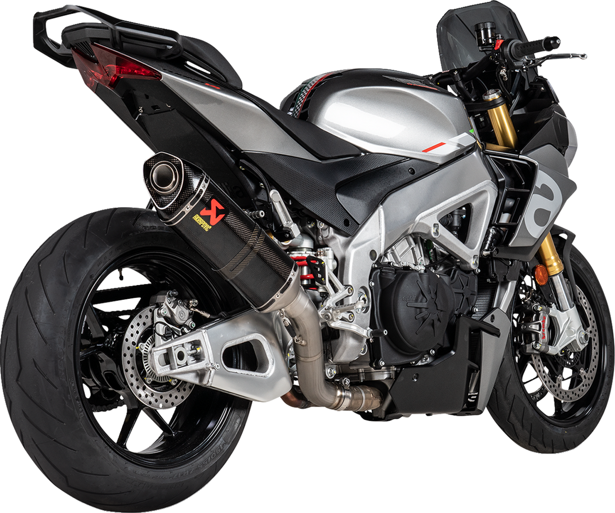 To match the performance and style, the Slip-On Line (Carbon) system serves up a deep and vivid sound, full of Akrapovic character, to totally encapsulate the Aprilia engine