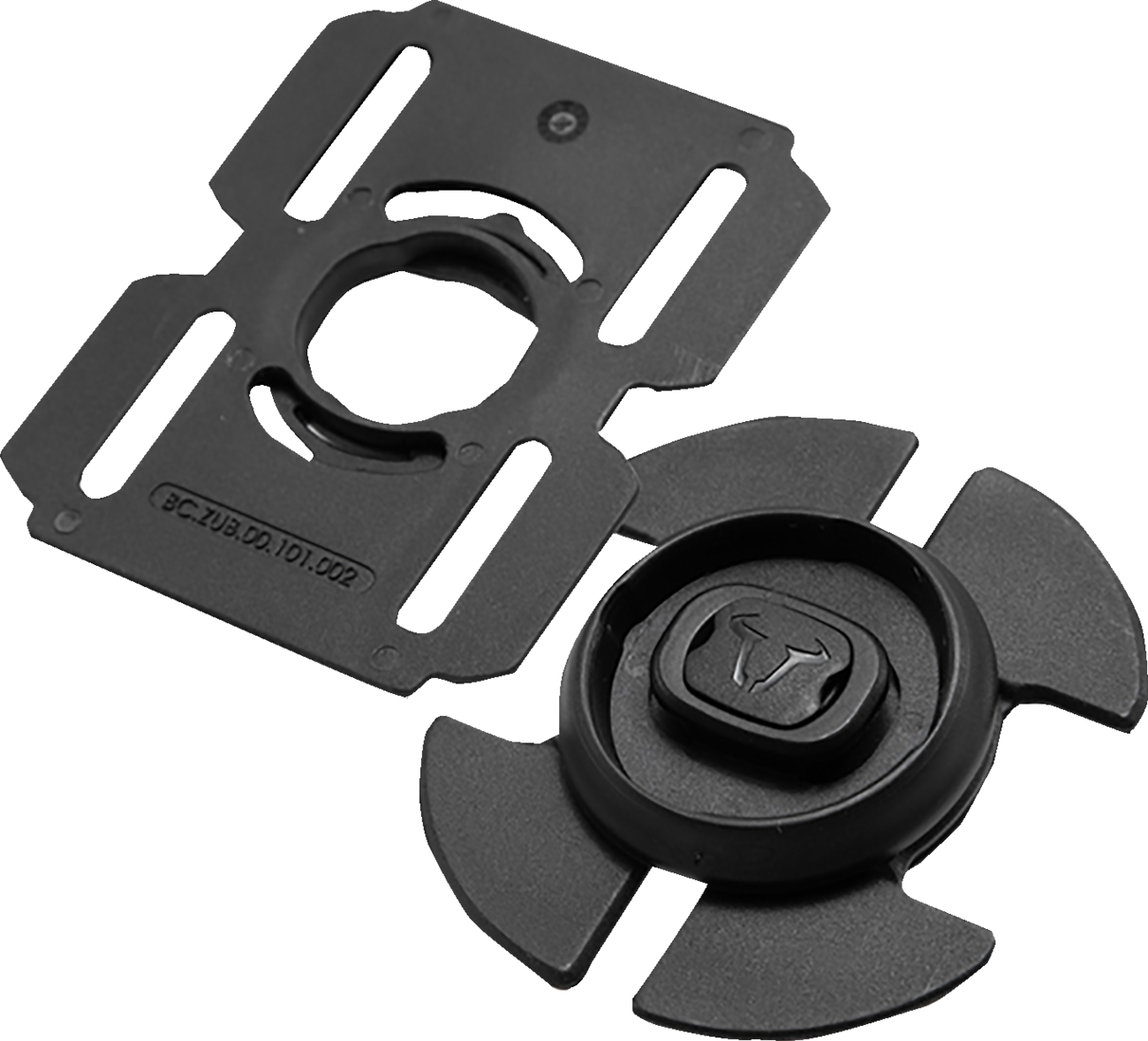 Using the twist-locking connector, the T-Lock holder connects accessory bags to the tail bags and tank bags with which a MOLLE system