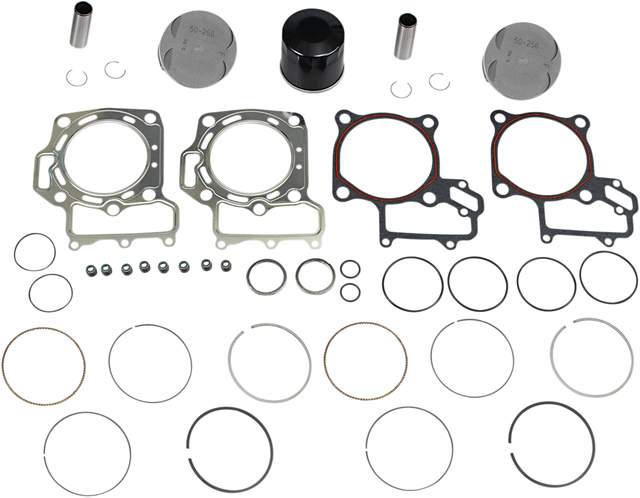 Includes pistons, rings, pins, clips, needle bearings, head and base gaskets and intake and exhaust gaskets and oil filter for 4-stroke models