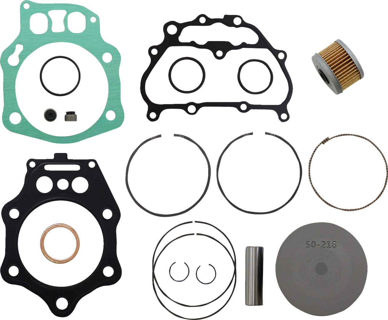 Includes pistons, rings, pins, clips, needle bearings, head and base gaskets and intake and exhaust gaskets and oil filter for 4-stroke models