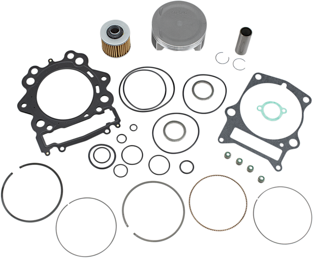 Includes pistons, rings, pins, clips, needle bearings, head and base gaskets and intake and exhaust gaskets and oil filter for 4-stroke models