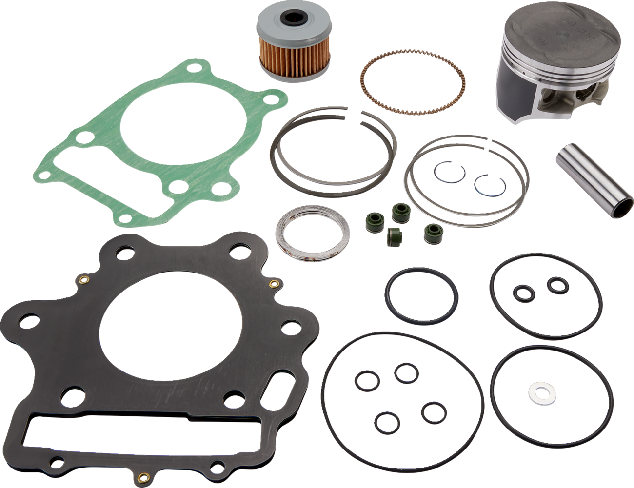 Includes pistons, rings, pins, clips, needle bearings, head and base gaskets and intake and exhaust gaskets and oil filter for 4-stroke models