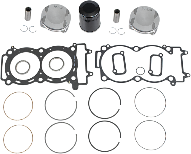 Includes pistons, rings, pins, clips, needle bearings, head and base gaskets and intake and exhaust gaskets and oil filter for 4-stroke models