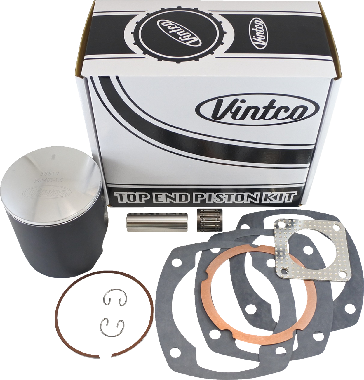 Includes a piston, rings, pin and clips, top end bearing and a full top-end gasket kit (head gasket, base gasket, intake gasket, and exhaust gasket)