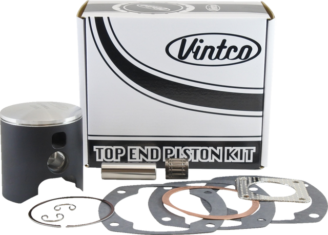 Includes a piston, rings, pin and clips, top end bearing and a full top-end gasket kit (head gasket, base gasket, intake gasket, and exhaust gasket)