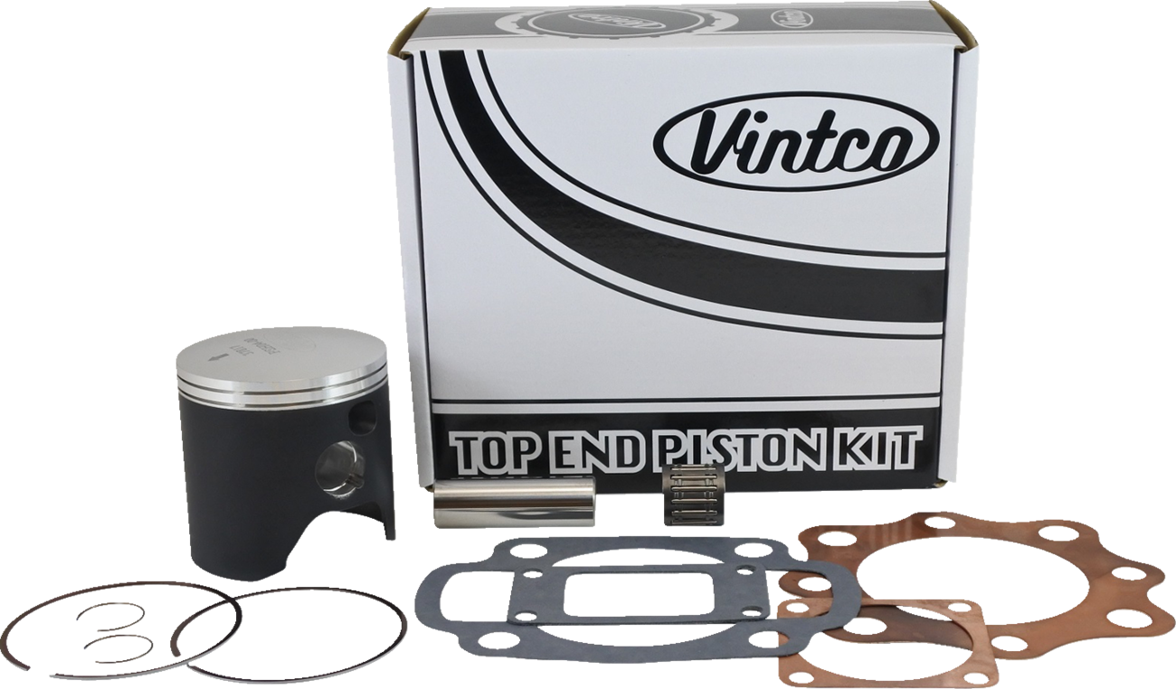 Includes a piston, rings, pin and clips, top end bearing and a full top-end gasket kit (head gasket, base gasket, intake gasket, and exhaust gasket)