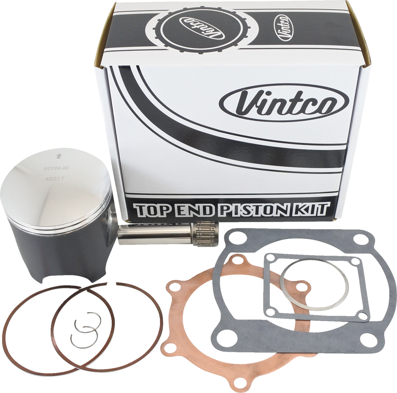 Includes a piston, rings, pin and clips, top end bearing and a full top-end gasket kit (head gasket, base gasket, intake gasket, and exhaust gasket)