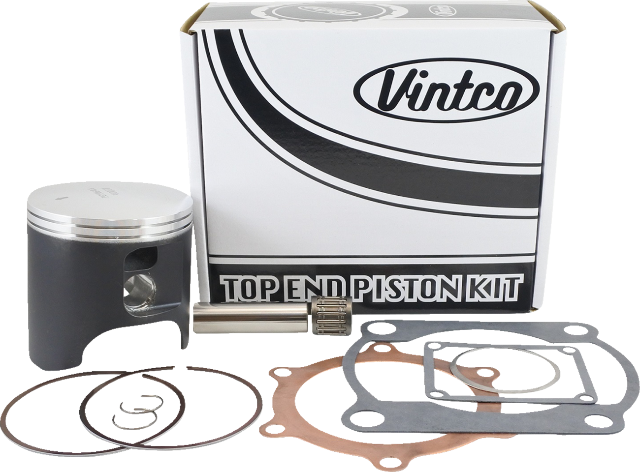 Includes a piston, rings, pin and clips, top end bearing and a full top-end gasket kit (head gasket, base gasket, intake gasket, and exhaust gasket)