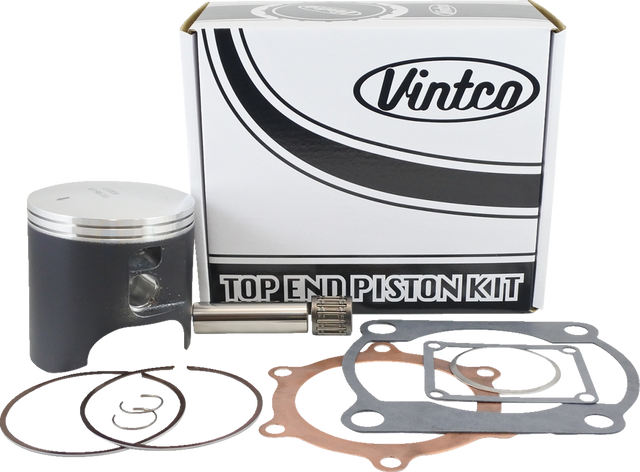 Includes a piston, rings, pin and clips, top end bearing and a full top-end gasket kit (head gasket, base gasket, intake gasket, and exhaust gasket)