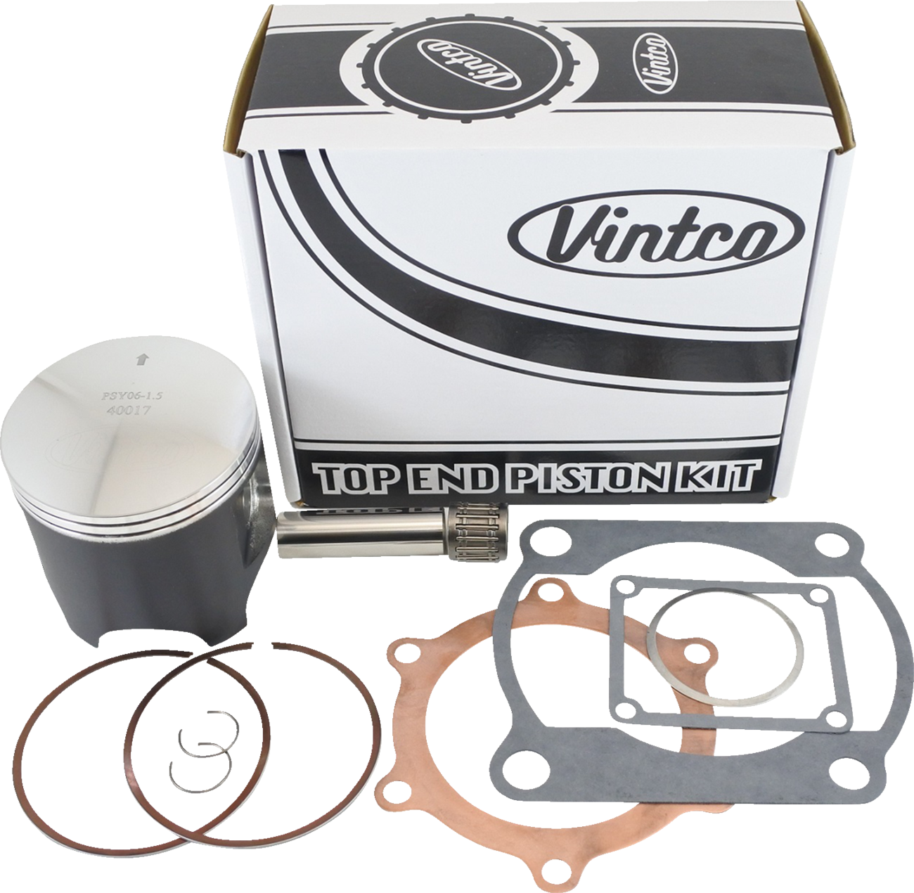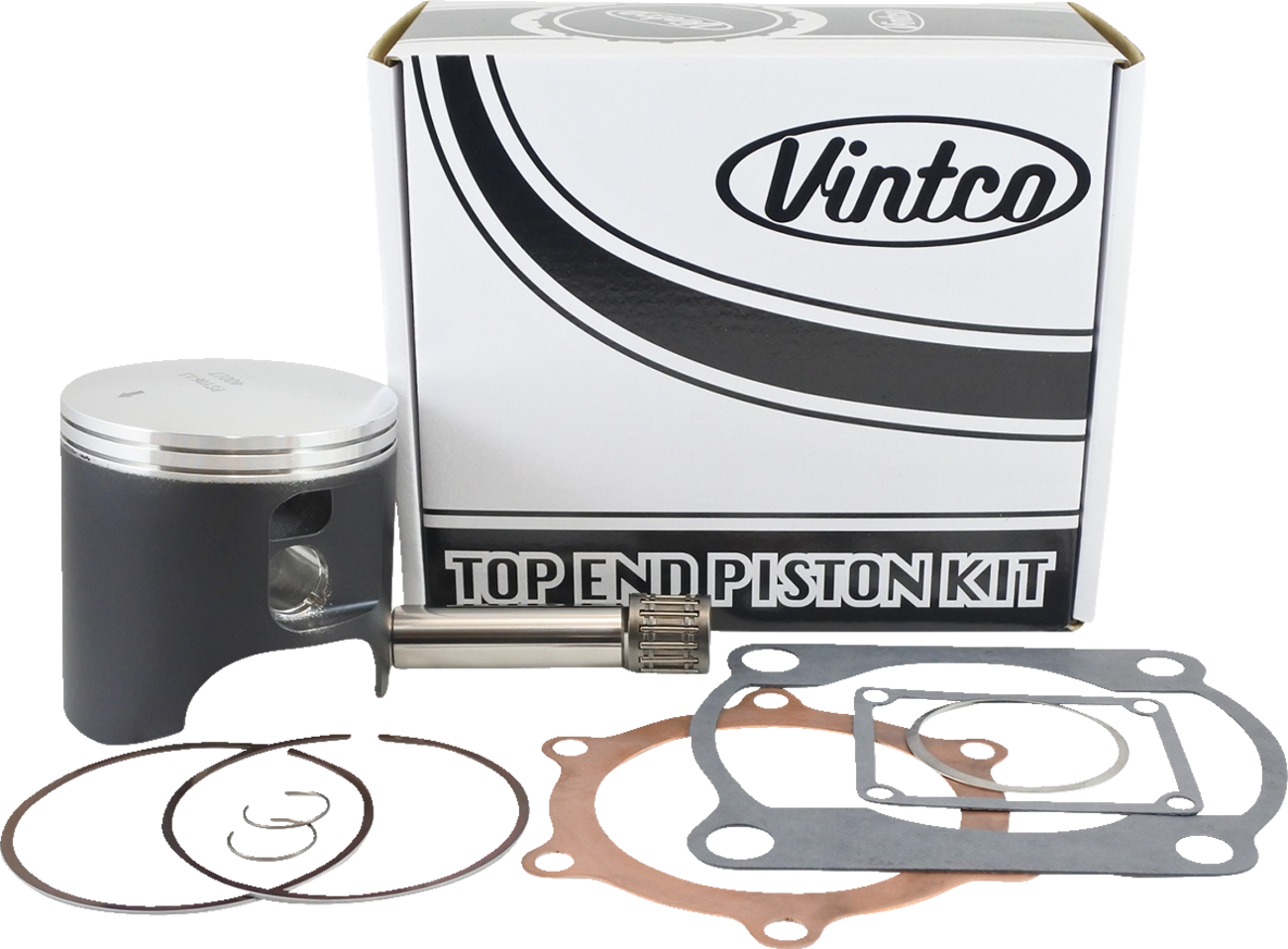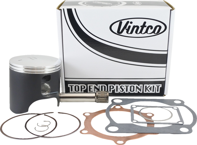 Includes a piston, rings, pin and clips, top end bearing and a full top-end gasket kit (head gasket, base gasket, intake gasket, and exhaust gasket)