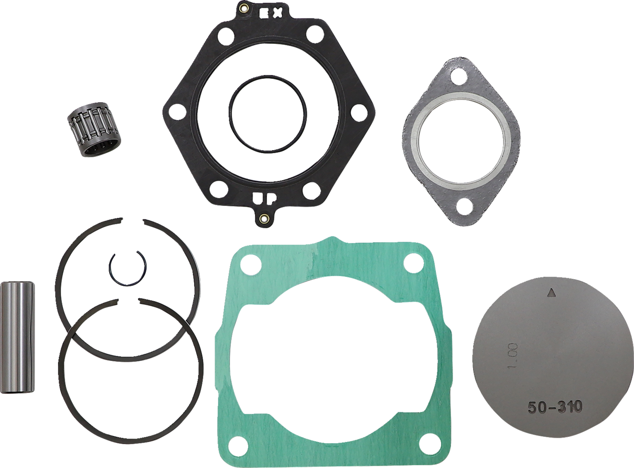 Includes pistons, rings, pins, clips, racing needle bearings, head and base gaskets, intake and exhaust gaskets