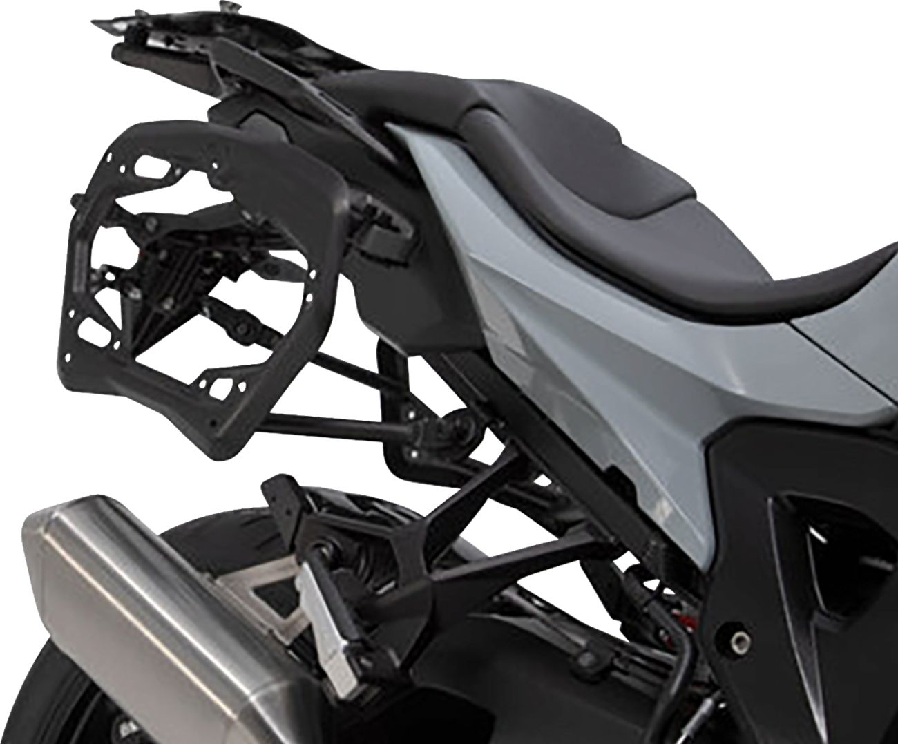 Mounted on to the existing holes of the SW-MOTECH PRO side carrier for left or right side