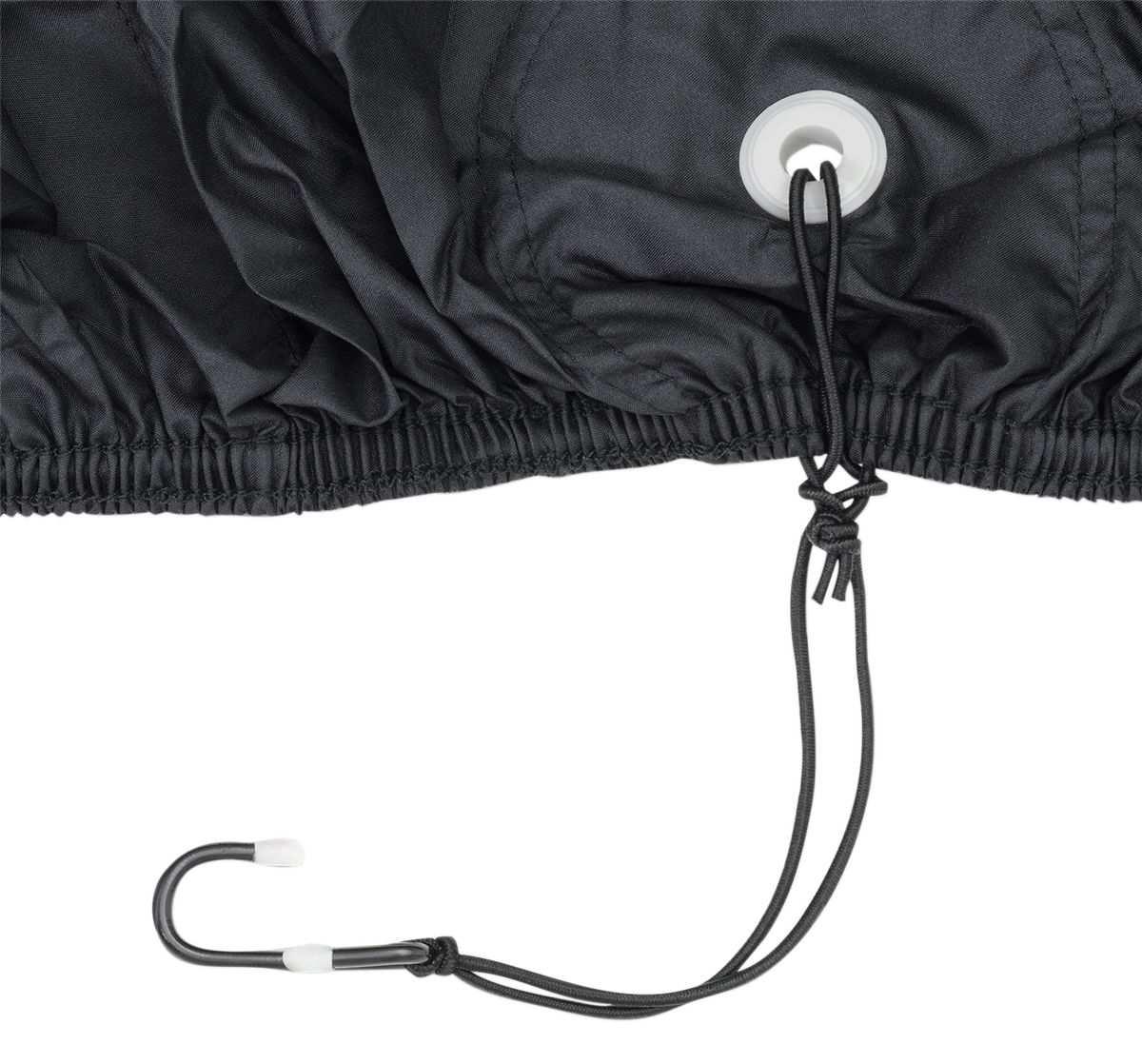 Elastic hem and bungee cord for tie down